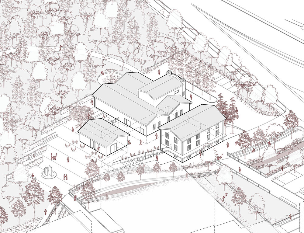 promenado, ki je pomaknjena na zahodni rob parcele v smeri